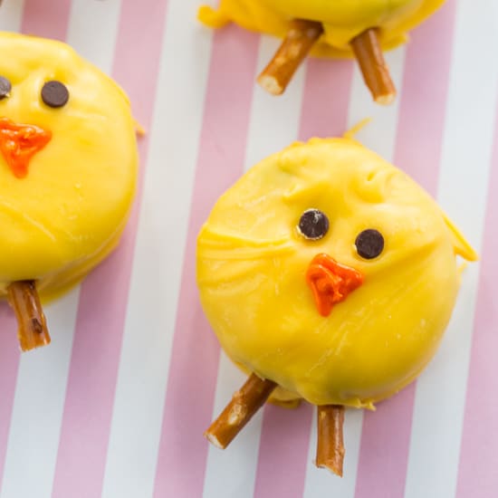 Oreo Easter Chicks es una forma súper divertida de convertir las galletas oreo en un delicioso regalo de Pascua con dulces amarillos y palitos de pretzel.