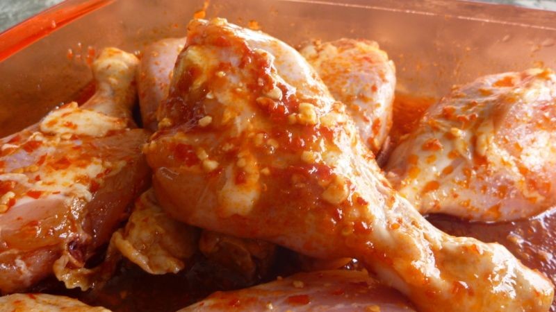 Mezclar todos los ingredientes en un bol, añadir el pollo y dejar marinar al menos unas horas o toda la noche.