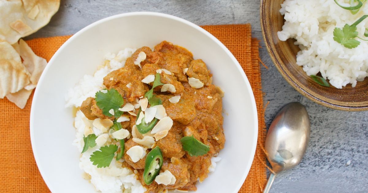Agregue el pollo al curry y cocine por 5 minutos o hasta que el pollo esté bien cocido.