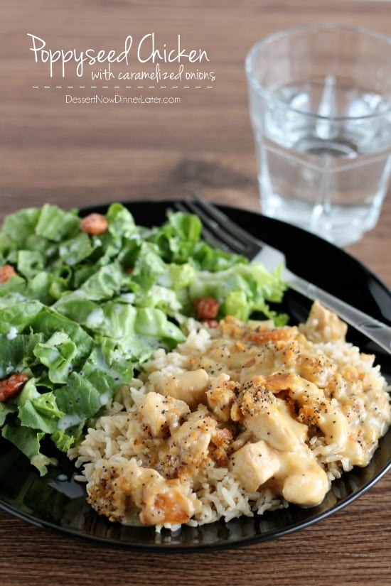 El pollo a la amapola es una de esas comidas que la mayoría de la gente ha preparado. Es súper simple y rinde mucho, así que alimenta a una familia numerosa. Quería hacer esto, pero le doy mi toque personal agregando cebollas caramelizadas. Puede ver que la salsa tiene un color dorado intenso gracias a las cebollas caramelizadas y solo agrega 15 minutos de tiempo de cocción adicional para obtener una profundidad de sabor que no obtendría si dejara las cebollas caramelizadas.