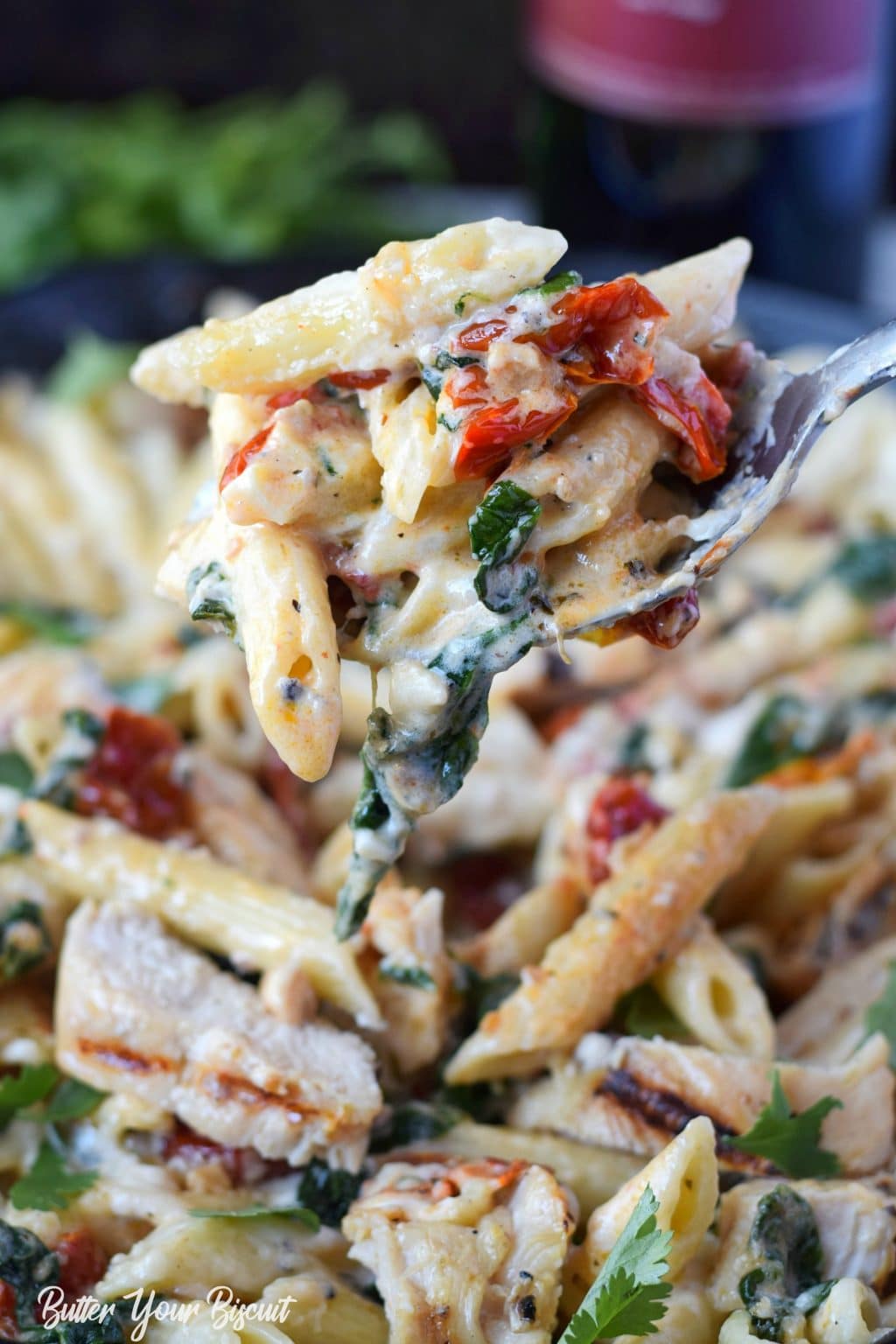 Esta pasta toscana con pollo es rápida y fácil, cubierta con una salsa increíblemente cremosa.