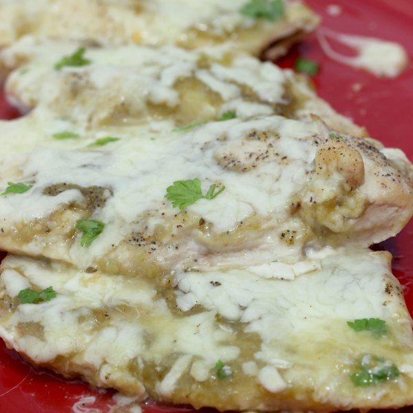 - Vierta la salsa verde sobre el pollo.