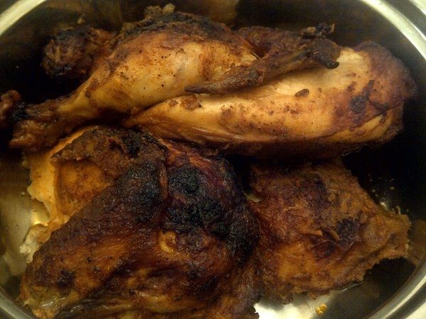 Coloque el pollo en la parrilla, con la carne hacia arriba, y cocine durante 20-25 minutos, volteándolo una vez, o hasta que esté bien cocido.
