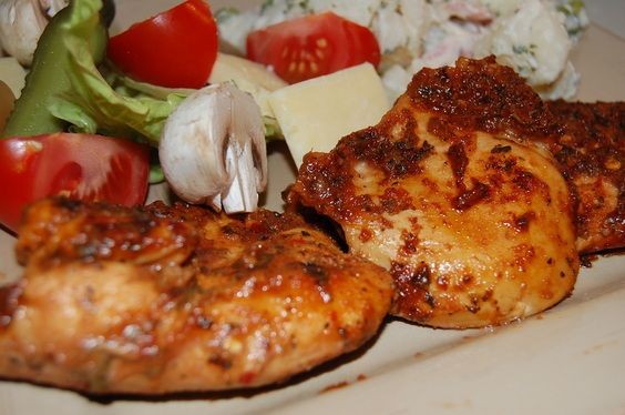 Mezclar todos los ingredientes, excepto el pollo, en un plato o recipiente apto para marinar.