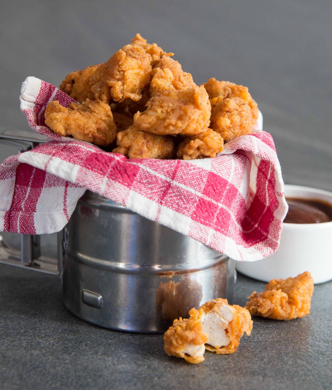 a) especia – 1 cucharadita de pimienta de cayena agrega un agradable toque especiado suave. Si no eres bueno con las especias, considera perder de 1/2 a 1/4 de cucharadita. ¡Simplemente no lo dejes afuera, ofrece un hermoso sabor! b) Lotes – Freír el pollo por lotes es importante por dos razones. La primera es que no esté abarrotado, lo que puede aumentar las posibilidades de que el pollo se pegue. La segunda es que si hay una gran cantidad de pollo en la sartén al mismo tiempo, baja la temperatura del aceite. Dado que los trozos de pollo son pequeños, no tardan mucho en cocinarse, lo que significa que no querrás que permanezcan en el aceite más tiempo del necesario. Si absorben demasiado aceite durante mucho tiempo, no estarán crujientes. Creo que dos lotes suelen estar bien, pero no más de 3 para esta receta. No querrás que el primer lote esté frío.