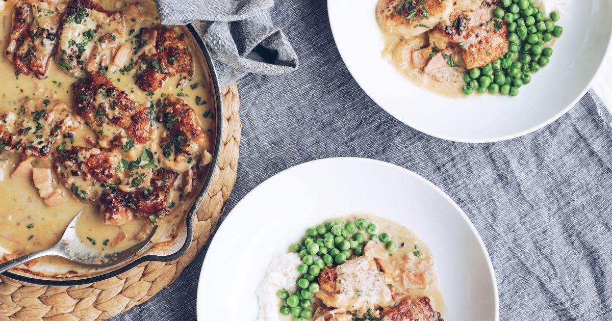 Retirar del horno y mezclar con la nata y el perejil. Sirva con arroz o puré de patatas y verduras.