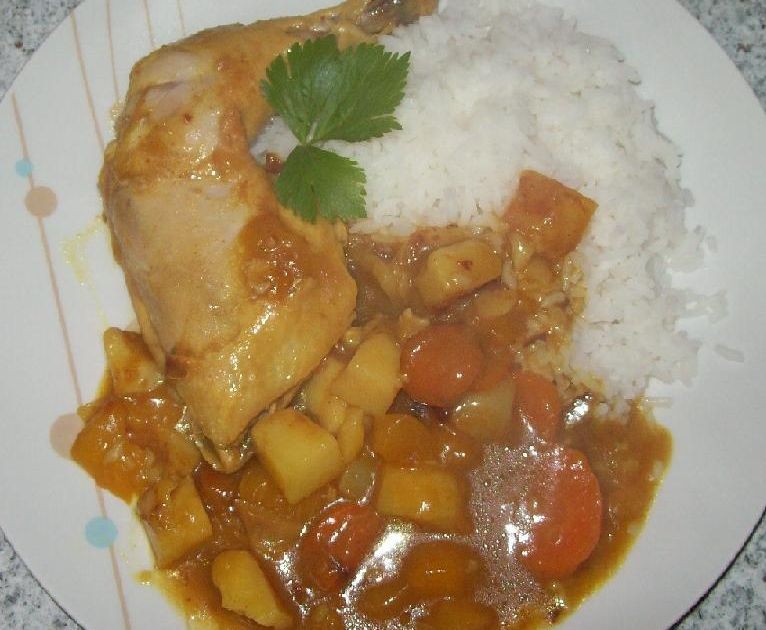 Caliente una pequeña cantidad de aceite en una sartén grande y fría el pollo y la cebolla hasta que estén dorados.