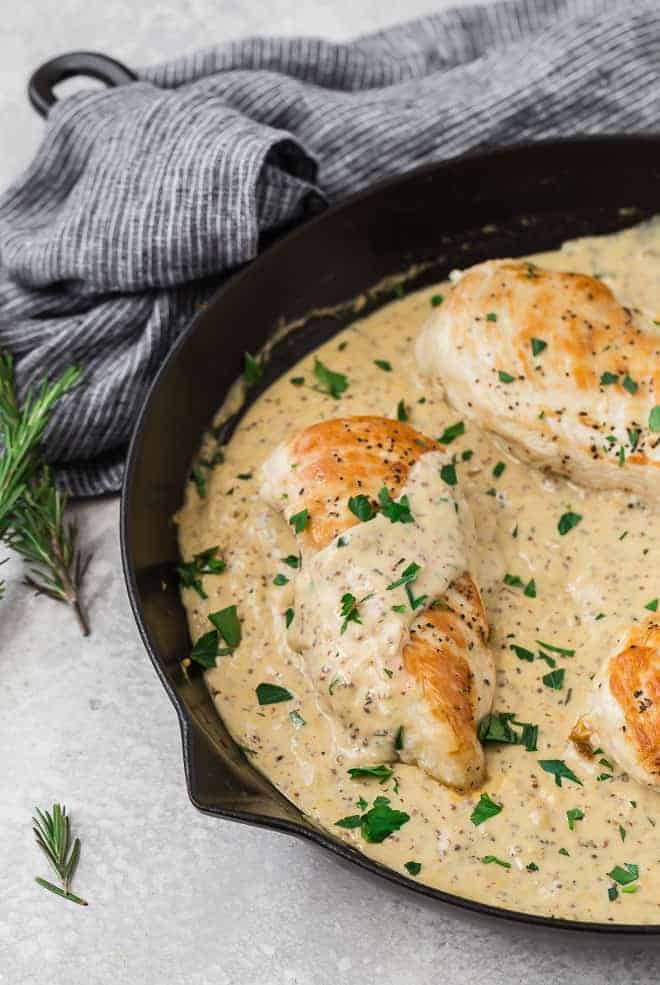 Este pollo con salsa de mostaza es una comida sencilla pero elegante. ¡La increíble salsa cremosa de romero Dijon hará que quieras lamer tu plato!