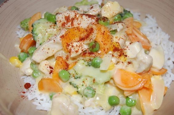 Llevar a ebullición durante 10-15 minutos. Servir con arroz hervido.