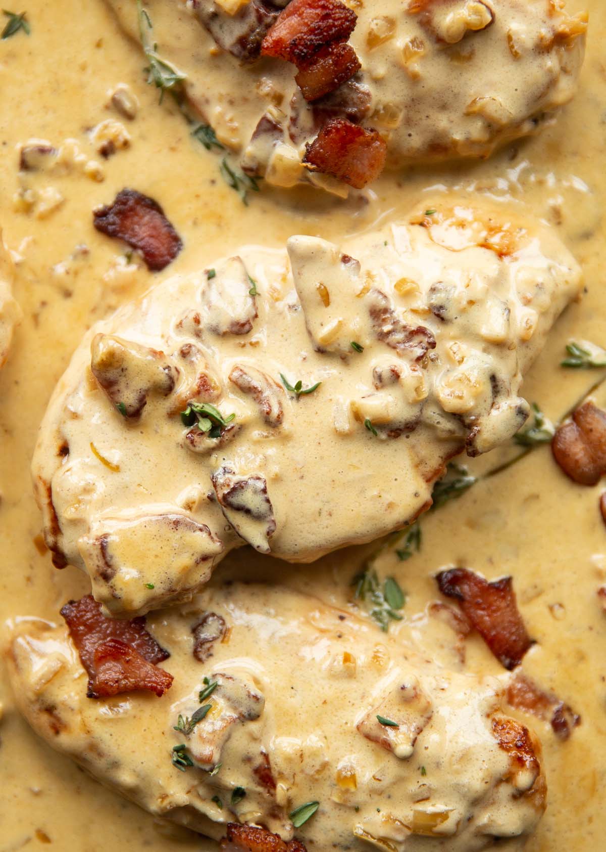 Estas pechugas de pollo cremosas con tocino son increíbles, ultra cremosas, rápidas y fáciles. Mejor aún, ¡todo está hecho en una sartén!