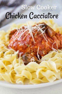 Nota interesante: Cazador en italiano se traduce como “cazador”. Así que prepara algo para el cazador Esto significa que las proteínas generalmente se cocinan con cebollas, tomates, hierbas, pimientos y vino. A veces incluso setas. ¡Una combinación increíble sin duda! Además del verdadero significado, a Ben le gustaba mucho repetir (como tres veces) que estaba comiendo su enorme tazón de espagueti cubierto con un delicioso cacciatore de pollo caliente estilo cazador. ¿Cuál es tu receta favorita de olla de cocción lenta? ¡Me encantaría escuchar eso en los comentarios!