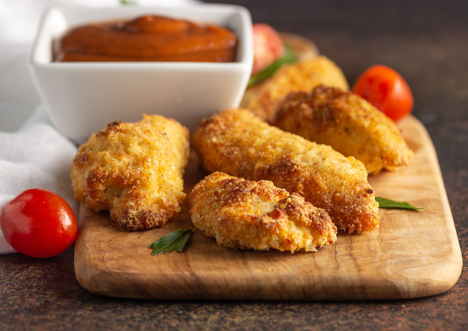 Keto Air Fryer Chicken o Oven Fried Chicken Tenders no contienen gluten, son bajos en carbohidratos y son muy sabrosos.
