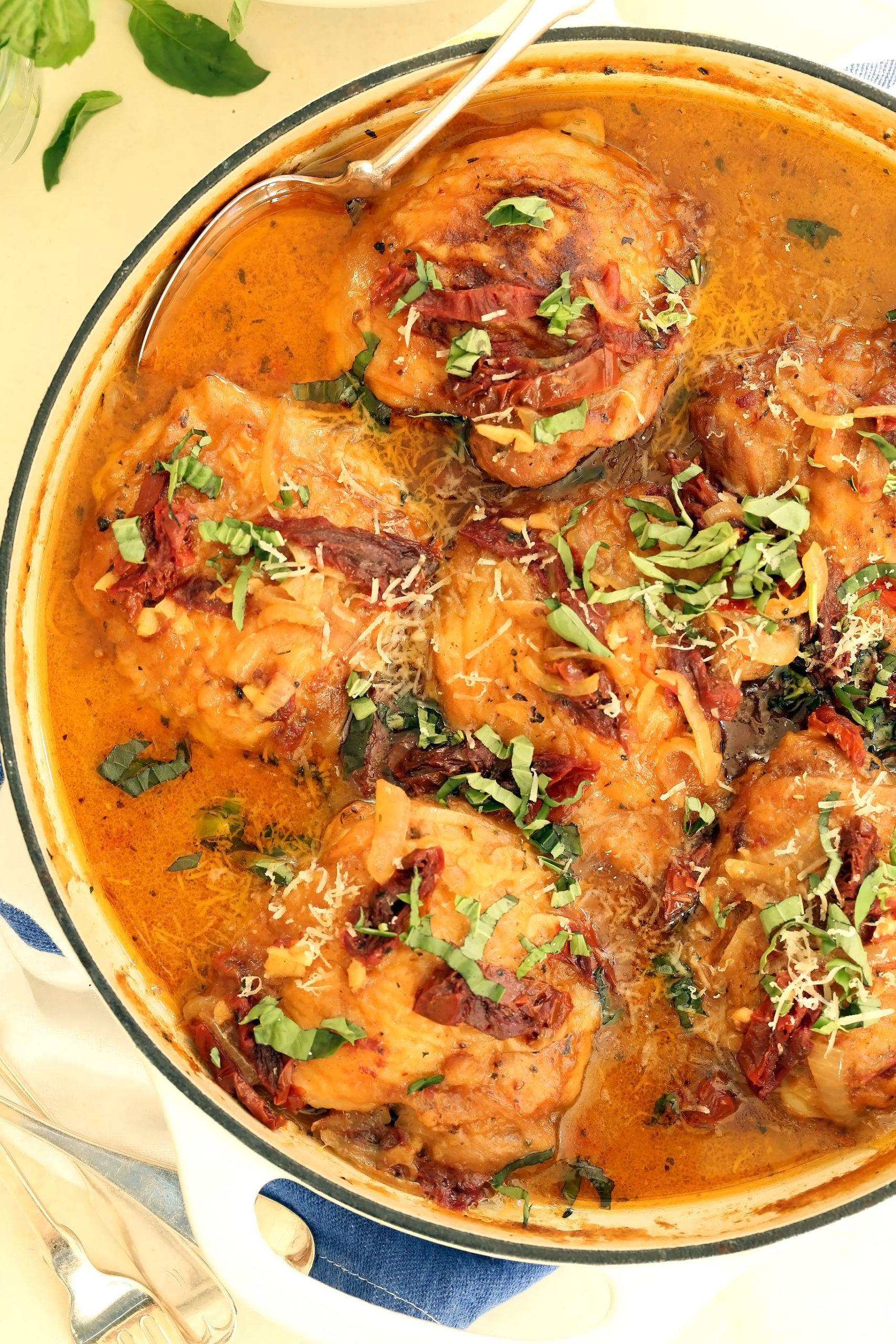 Este pollo secado al sol en salsa cremosa de tomate es una receta de olla de pollo rápida y fácil para preparar todas las noches de la semana. La salsa de este plato es deliciosa y cremosa y se hace sin una sola gota de nata.