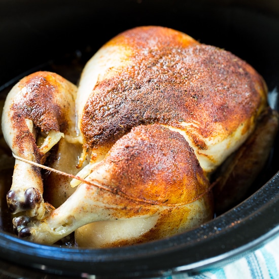 Un toque de especias le da a esta deliciosa olla de cocción lenta un sabor picante a pollo entero. Sin grasa añadida hace que esta receta sea súper saludable.