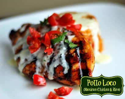 Nunca había oído hablar de Crazy Chicken hasta que lo vi en el blog Plain Chicken. Tan pronto como lo vi, supe que se convertiría en el favorito de la familia. ¿Cómo no gustar el pollo asado marinado, el arroz a la mexicana y la salsa de queso? Aquí está nuestra versión: