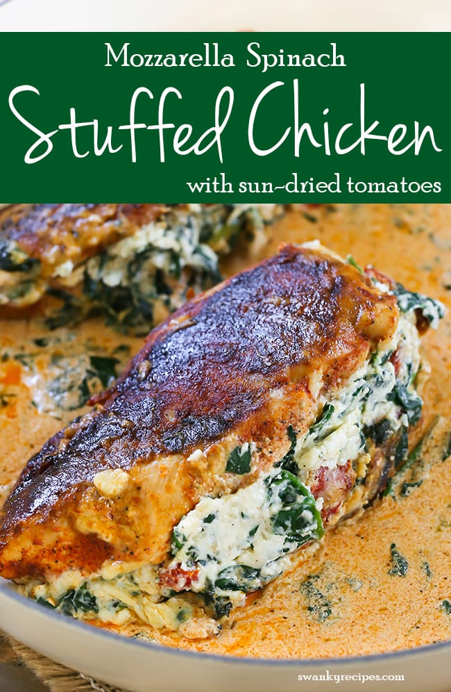 Lo que me gusta de este pollo es que es rico en sabor. El relleno de queso se rellena con tomates secados al sol, espinacas frescas y ajo. ¡Su relleno cremoso decadente es absolutamente digno de mención! Si pensó que el exfoliante de pollo era bueno, espere hasta que muerda el relleno.