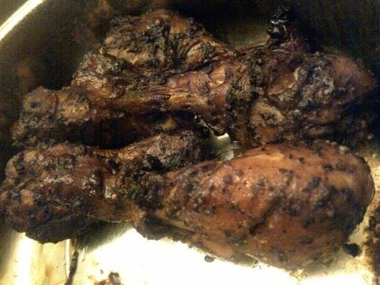 Introduce la fuente en el horno precalentado a 180°C y cocina durante 1 hora o hasta que el pollo esté bien cocido y empiece a despegarse del hueso.