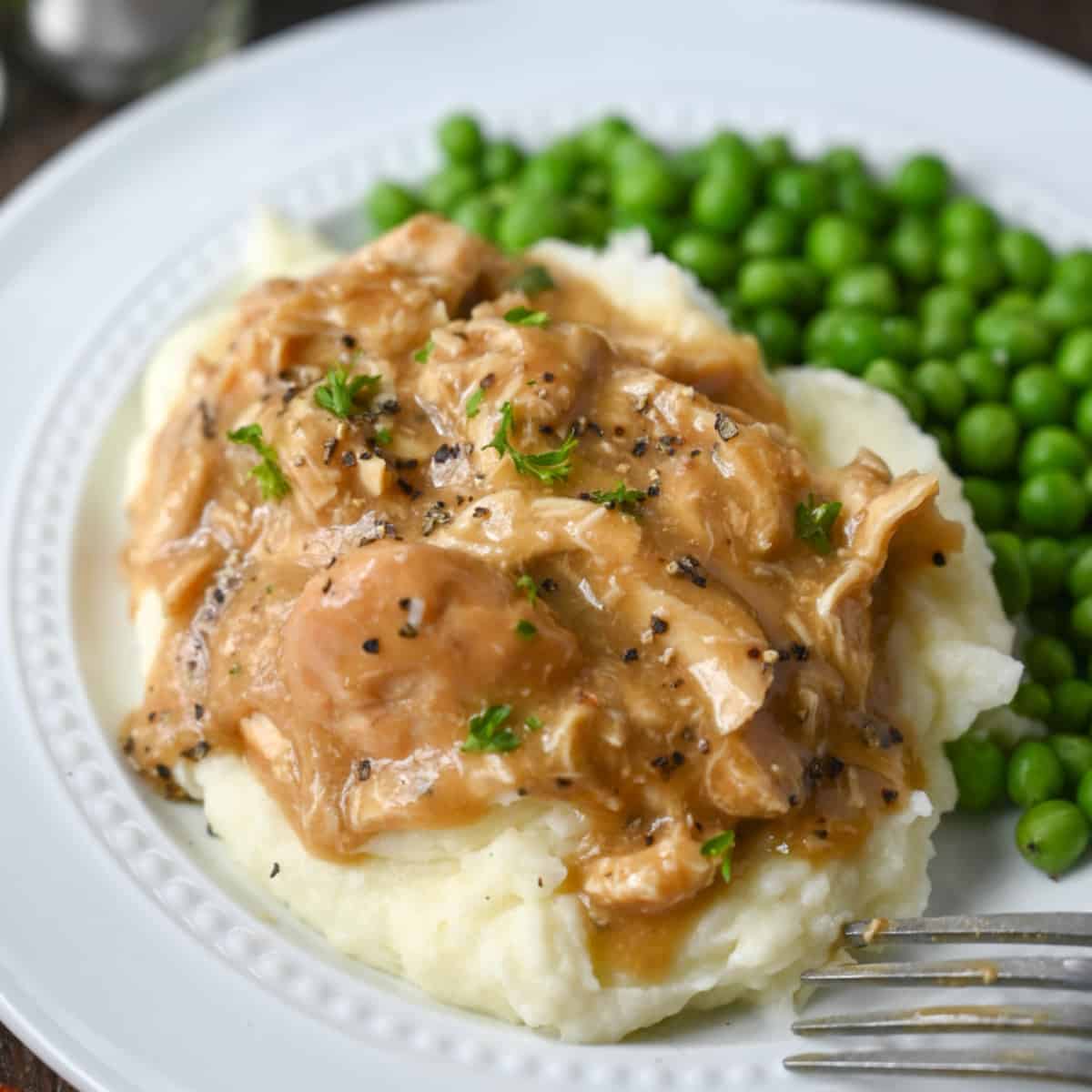 El pollo y salsa de cocción lenta es la comida perfecta para la noche entre semana. El pollo jugoso, tierno y desmenuzado en una salsa cremosa es pura comodidad. ¡Una deliciosa cena que disfrutará toda la familia!