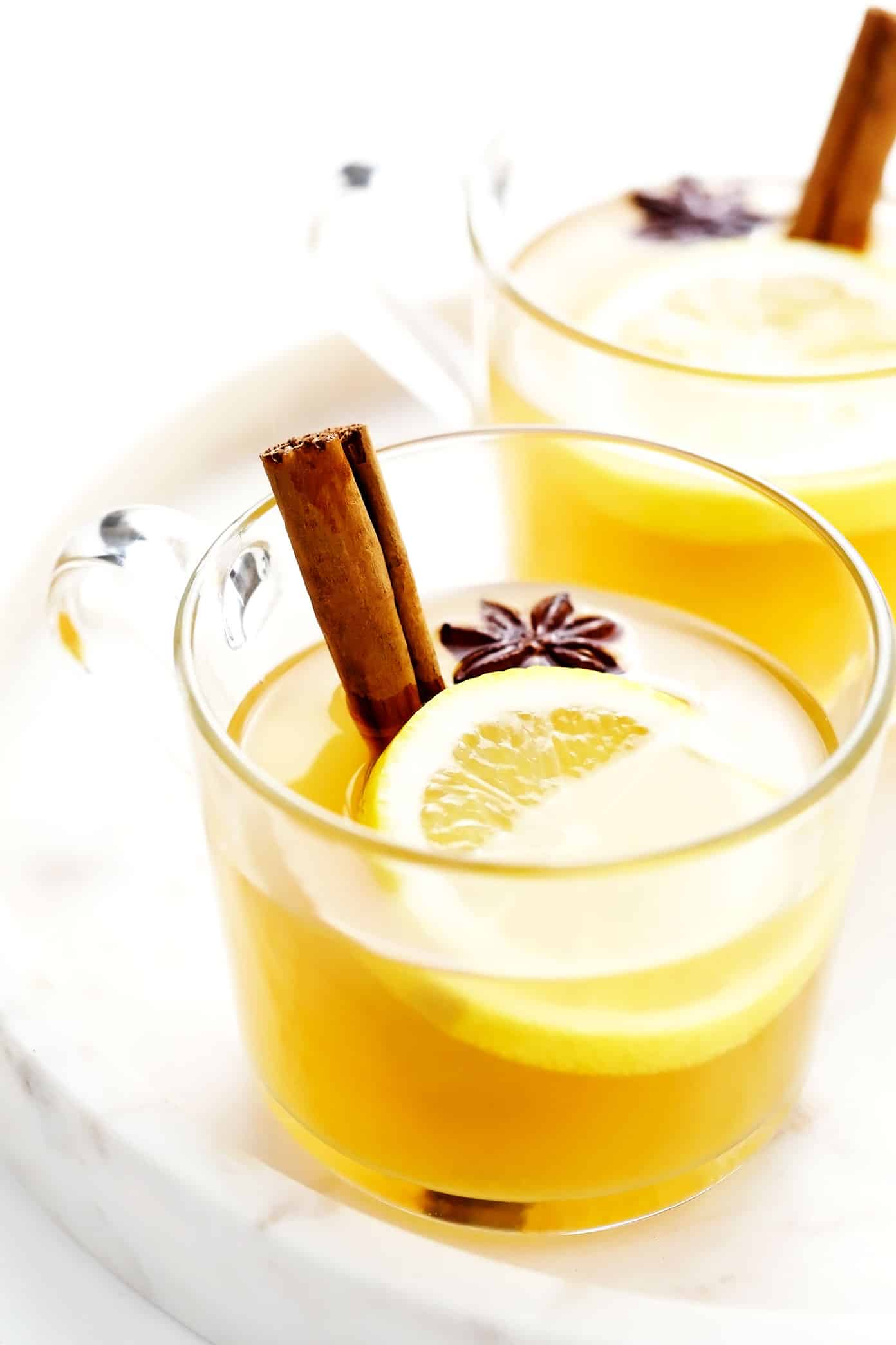 - Haz un toddy de sidra de manzana caliente: Si tienes un poco de sidra de manzana a la mano, puedes cambiarla por agua (o té) para hacer un ponche de sidra de manzana caliente.