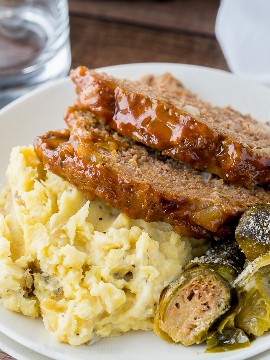 - Retire con cuidado el pastel de carne de la olla a presión y colóquelo en una bandeja para hornear. Mezcle los ingredientes para el glaseado y cepille todo el pastel de carne. Coloque el pastel de carne debajo de la parrilla durante solo 3-4 minutos, hasta que la parte superior esté burbujeante y caramelizada.