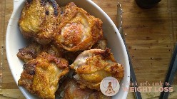 Verificar. Debería ver caer más aceite en la sartén y el exterior del pollo tiene un color dorado intenso.