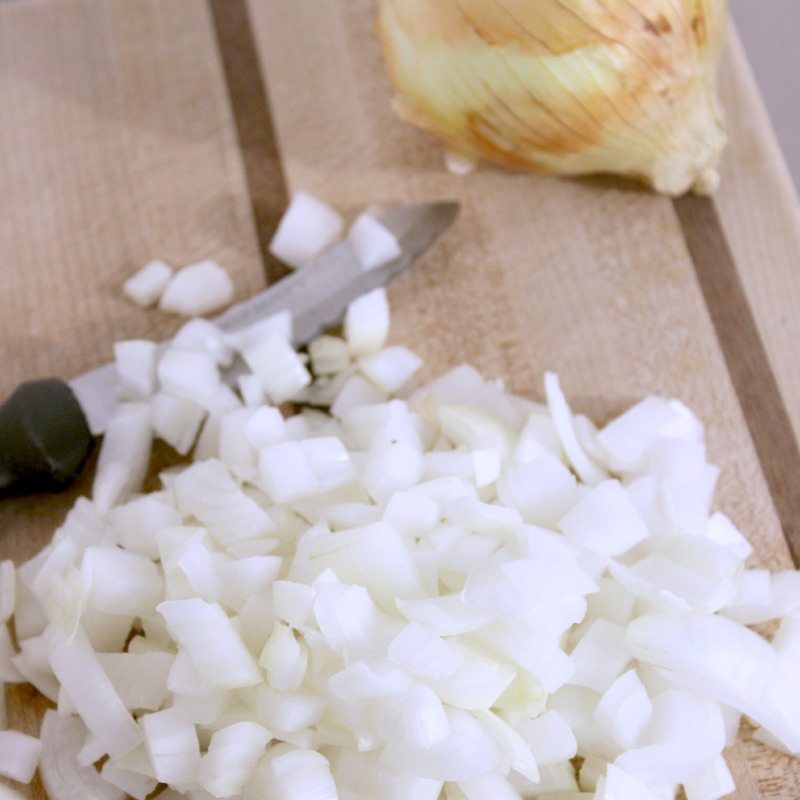 Si tenemos Hamburger Helper, spaghetti, crock pot, hacemos judías verdes, sopa o frituras, comeremos cebolla. Es un poco aburrido tener que pelar y cortar una cebolla todos los días.