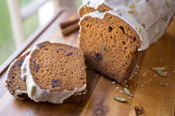 Pan picante con calabaza de arándanos y naranja y glaseado de vainilla y naranjadesde