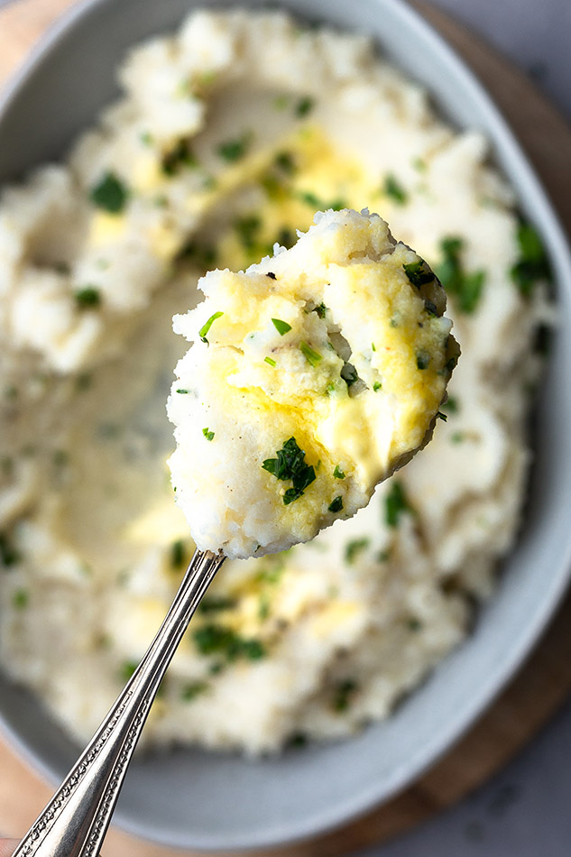 Esta sencilla receta de puré de coliflor es perfecta para personas con dietas Whole30, paleo, cetogénicas y bajas en carbohidratos, y también incluye una opción vegana.