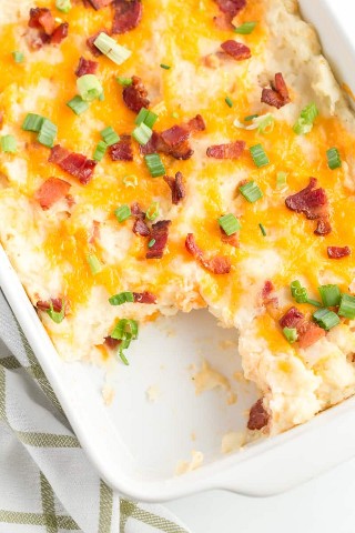 Cremoso, cursi y lleno de tocino, este guiso de puré de papa es el acompañamiento perfecto para su cena semanal. Fácil y deliciosa, esta receta es imprescindible. Plato: Entrada, Plato Principal, Acompañamiento Tipo de Cocina: Americana Tiempo de Preparación: 20mins Tiempo de Cocción: 35mins Tiempo Total: 55mins Porciones: 8 Porciones Calorías: 438kcal