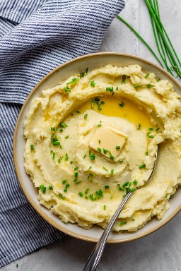 Ahora, si sigue una dieta baja en carbohidratos, las papas podrían no ser la mejor opción, ya que una sola papa tiene 36 gramos de carbohidratos y solo 4 gramos de fibra. Es por eso que la mayoría de las personas los evitan cuando siguen dietas estrictas. Sin embargo, la razón principal por la que las papas pueden volverse poco saludables es la forma en que se preparan. – especialmente cuando se trata de puré de patatas. Es fácil que las calorías y la grasa se sumen a toda la mantequilla, la leche y la crema de puré de papas. Así que no se salte la papa, solo haga algunos sustitutos saludables del puré de papa.