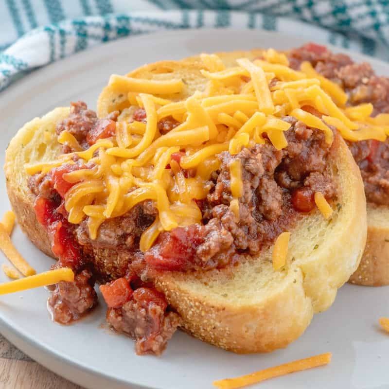 ¡Estas Cheesy BBQ Sloppy Joes son las tostadas de ajo de Texas más deliciosas y fáciles de asar cubiertas con queso derretido!