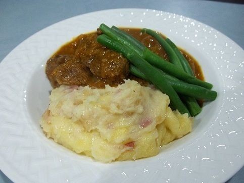 Coloque las papas en una sartén. Escurrir y triturar con un poco de mantequilla y leche.