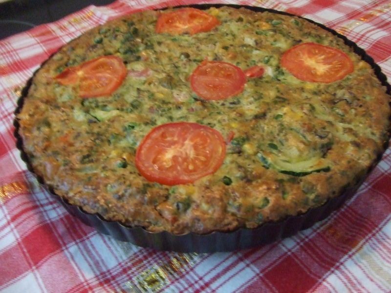 Vierta la mezcla de huevo sobre los demás ingredientes y cocine a 180°C-190°C durante 25 minutos o hasta que esté bien cocido.