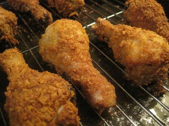 Sumerja el pollo en la mantequilla derretida y mézclelo con la mezcla de chips de maíz.