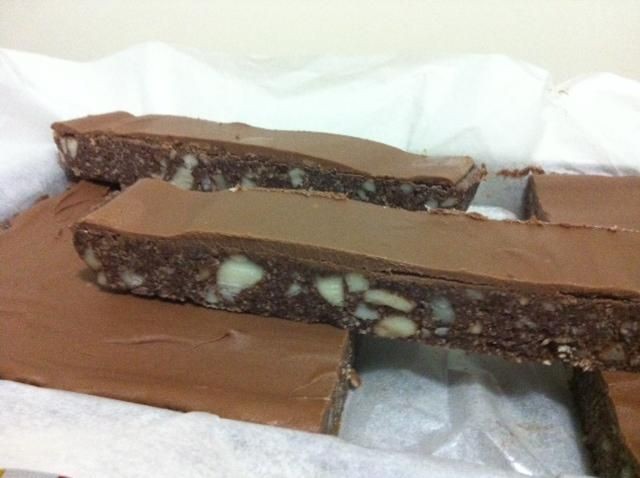 Colocar las galletas troceadas, el coco, el cacao y las nueces de macadamia en un bol.