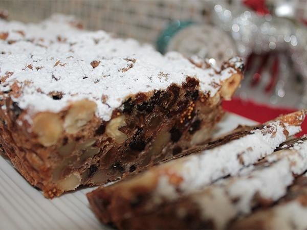 Vierta la mezcla en un molde preparado y hornee por 40 minutos. Dejelo enfriar. Espolvorear con azúcar impalpable y cortar en rodajas finas.