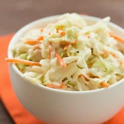Ahora volvamos a la ensalada de col… Me encanta porque es cremosa, pero no esa mayonesa. Recomiendo enfriarlo por dos horas antes de comerlo; hay tiempo de vestirse para que todos se mezclen. Cuando lo mezcle por primera vez, parecerá muy alto en vinagre, pero una vez que tenga la oportunidad de sentarse, todos los sabores se equilibran perfectamente.