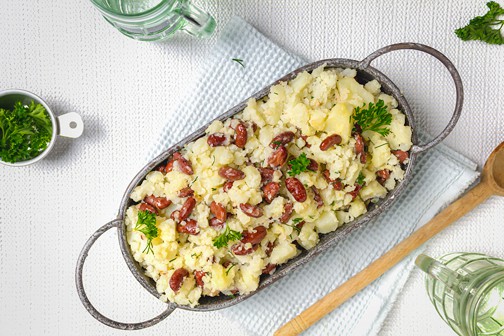 Esta sencilla y sabrosa guarnición de papas y frijoles se cocina en solo 20 minutos y complementa casi cualquier plato de carne.
