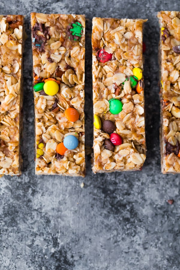 Estas barras de granola de galletas monstruosas son la receta favorita de Kai, debido a esos M&M’s… Quiero decir, es bastante difícil renunciar a los M&M’s, ¿eh?