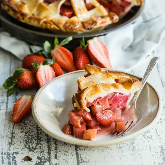 Si tiene la suerte de encontrar tallos de ruibarbo frescos y buenas fresas, este pastel debe estar en la parte superior de su lista de tareas pendientes. Una obra maestra de fruta agridulce cocinada bajo una cáscara de grano escamosa que es engañosamente fácil de manejar, este favorito perenne se puede devorar en menos tiempo del que se tarda en cocinar. ¡Deja tu tenedor, ahí está el pastel!