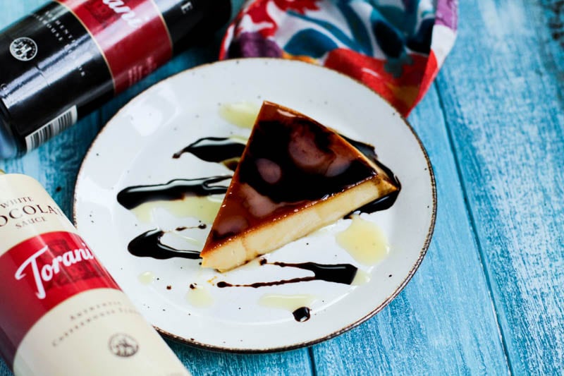 Ahora ya sabes cómo preparar el budín de café, dónde comprar los ingredientes para crear el budín de café y la historia de Torani. Hablemos de la guinda figurativa del pastel. Lo que diferencia a este budín de café de su abuela es la Salsa de Chocolate Amargo Torani y la Salsa de Chocolate Blanco Torani que supera al caramelo. Lo admito, la parte superior de tu flan se verá como una cebra increíble. Siéntase libre de ser creativo con un palillo de dientes para hacer algunos diseños geniales.