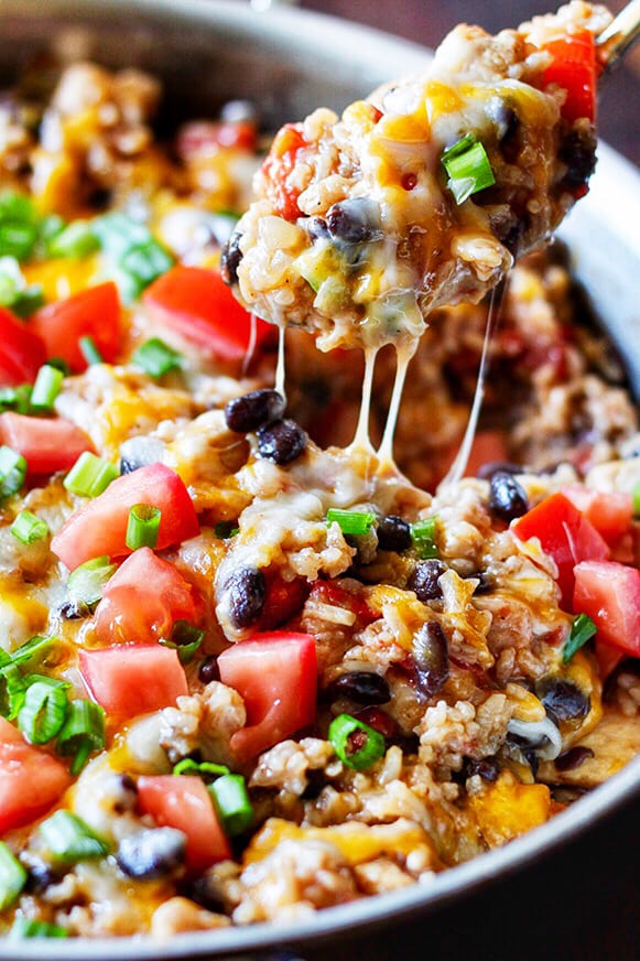 Variantes de la receta: intente omitir los pimientos o jalapeños cortados en cubitos junto con las cebollas. Agregue el elote congelado en los últimos 5 minutos de cocción. Reemplace la carne molida de res o el pavo molido con pollo. Omita el queso para una versión más ligera.