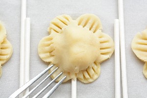 La forma de la flor es difícil de sellar correctamente, por lo que no será perfecta. ¡Pero saben increíble! La corteza del pastel se endurece en el horno, haciéndolos como varias galletas en un palito. ¡Mmm!