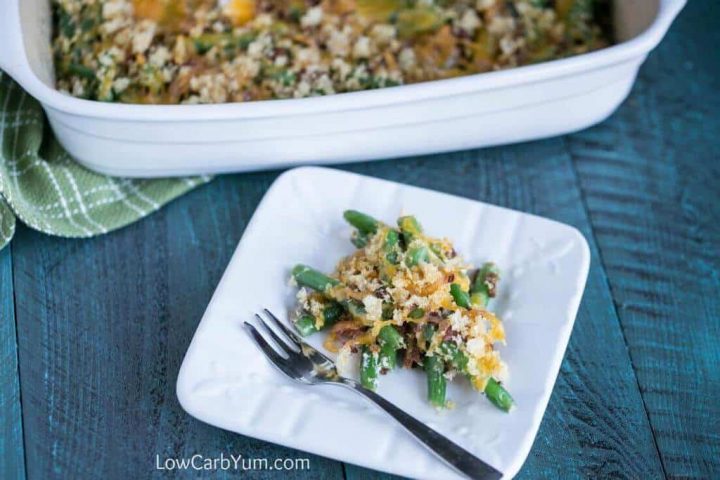 Siéntase libre de personalizar esta cazuela de judías verdes sin gluten a su gusto. Pero asegúrese de mantener todos los ingredientes bajos en carbohidratos. Descubrí que una mezcla de leche de almendras y queso crema funciona como alternativa a la crema agria.