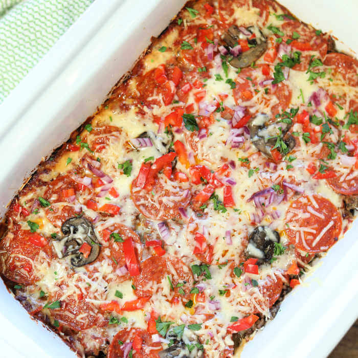 Realmente se ha convertido en una de nuestras recetas favoritas de ollas de barro. ¡Debes probar esta cazuela de pizza Low Carb Crock Pot hoy!