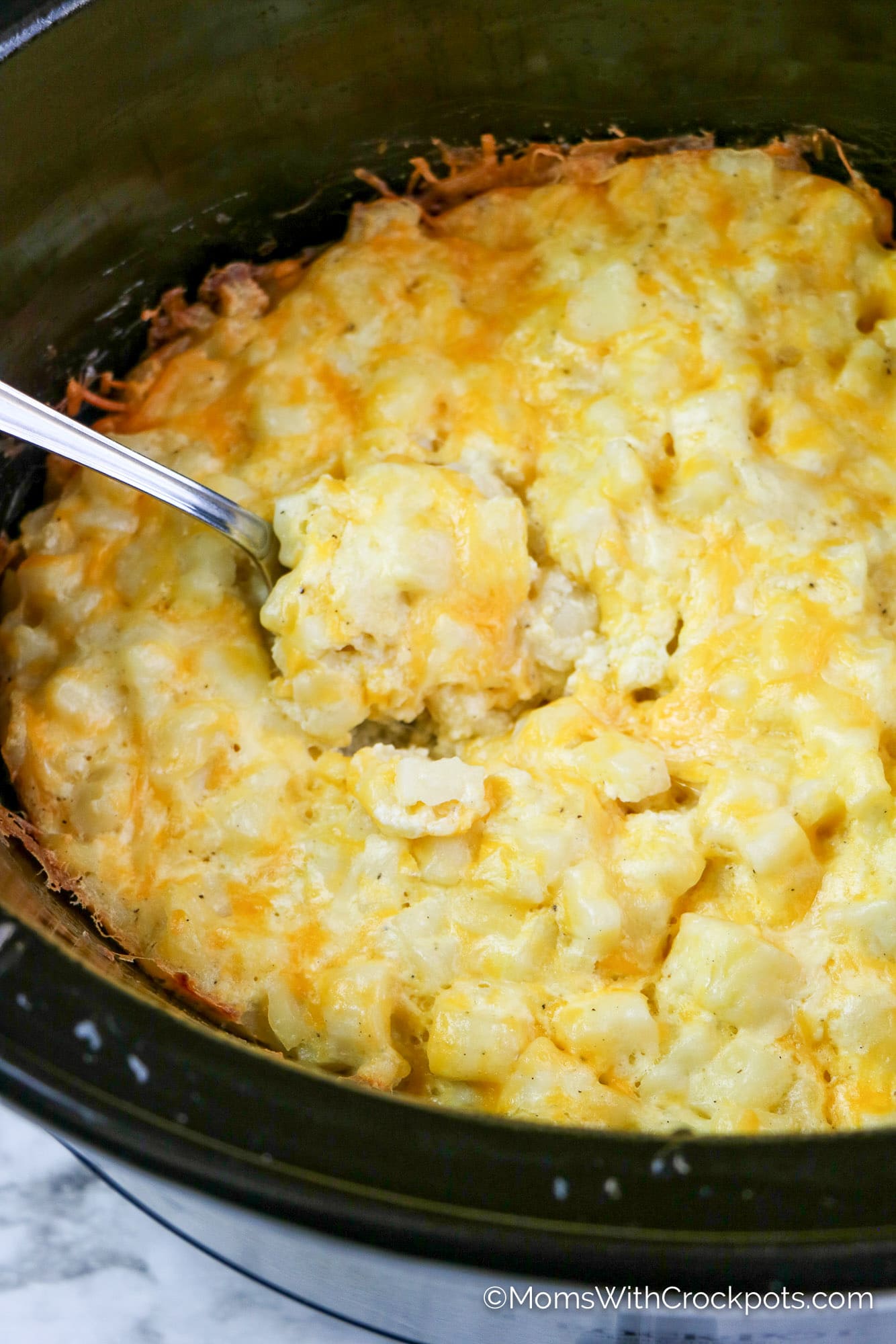 Queso, caliente y delicioso. Estas papas hashbrown con queso Crockpot son perfectas para cualquier golpe de suerte o reunión. Todos querrán esta receta.
