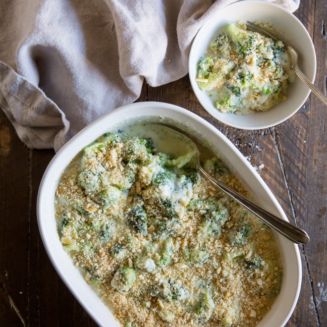 Para hacer una cazuela de brócoli con queso, simplemente mezcle los floretes de brócoli blanqueados en una salsa casera de queso Mornay y agregue las migas de galleta. Tipo de Cocina Americana Tiempo de Preparación: 5 minutos Tiempo de Cocción: 20 minutos Tiempo Total: 25 minutos Porciones: 8 porciones Calorías: 267 kcal