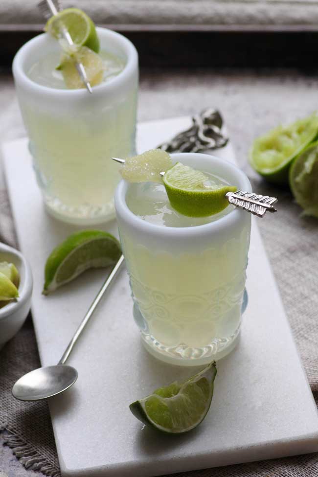Coloque una jarra de jugo de limón recién exprimido y una tarjeta de recetas en el mostrador con instrucciones para que sus invitados puedan hacer sus propios cócteles mientras disfrutan.
