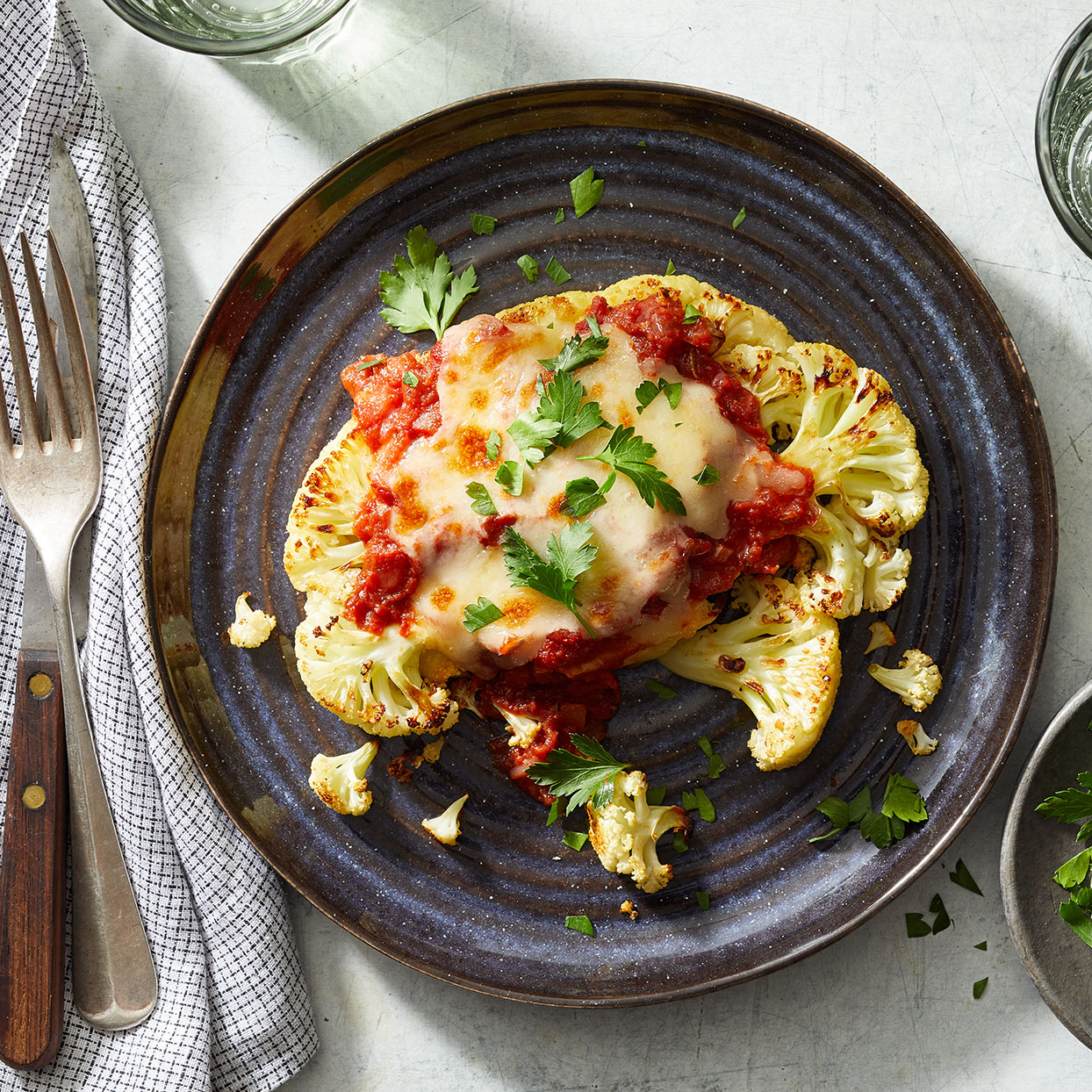 Tamaño de la porción: 1 filete de coliflor por porción: 111 calorías; 4,9 g de grasa total; 2 g de grasa saturada; 9 mg de colesterol; 359 mg de sodio. 532 mg de potasio; 11,2 g de carbohidratos; 3,3 g de fibra; 5 g de azúcar; 6,4 g de proteína; 216 UI de vitamina a UI; 60 mg de vitamina c; 76 mcg de folato; 144 mg de calcio; 1 mg de hierro; 32 mg de magnesio;