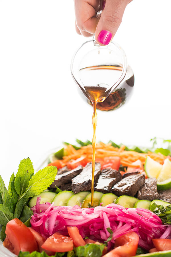 Esta ensalada vietnamita de carne a la parrilla está hecha con carne simplemente marinada con jugo de limón, sal y pimienta. Eso es. Sin aceite. Sin problemas. ¡Te encantará esta receta de ensalada de carne vietnamita fácil y fresca!